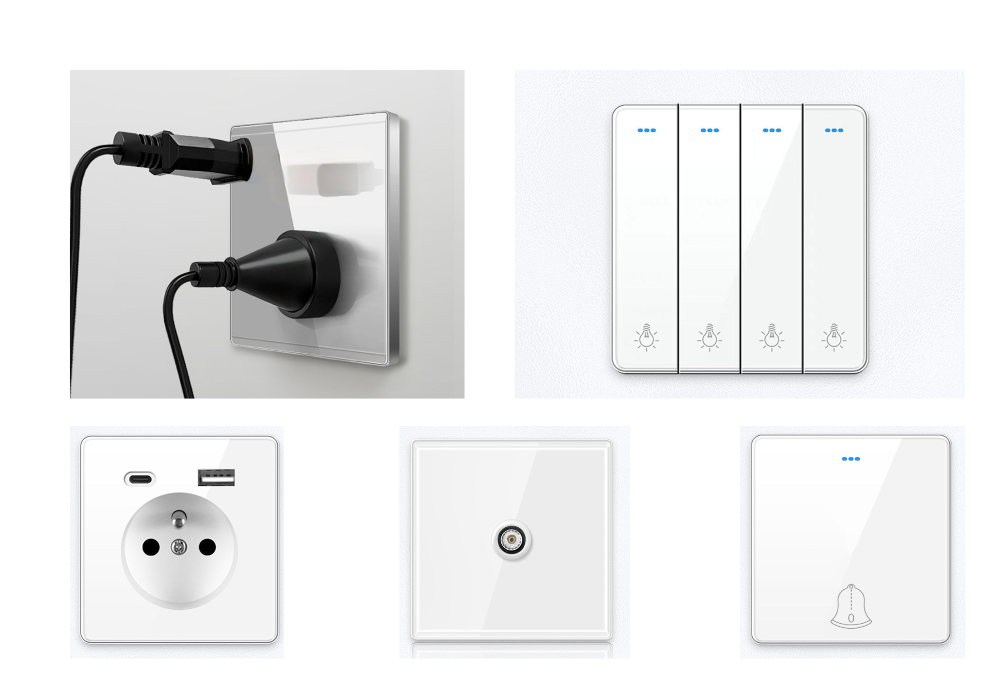Our tempered glass, acrylic, brushed aluminum, wood, and plastic-faced outlet and switch models are engineered for modern aesthetics, durability, and extended service life. We provide bulk project solutions for electrical outlets, switches, TV-telephone outlets, and smart door locks.